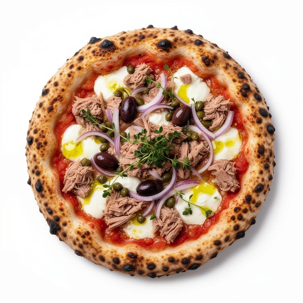 Our Tonno Pizza is a beloved Mediterranean favorite known for its rich yet refreshing flavor. Baked on a perfectly crisp yet soft crust, it starts with a base of rich tomato sauce and melted mozzarella cheese.